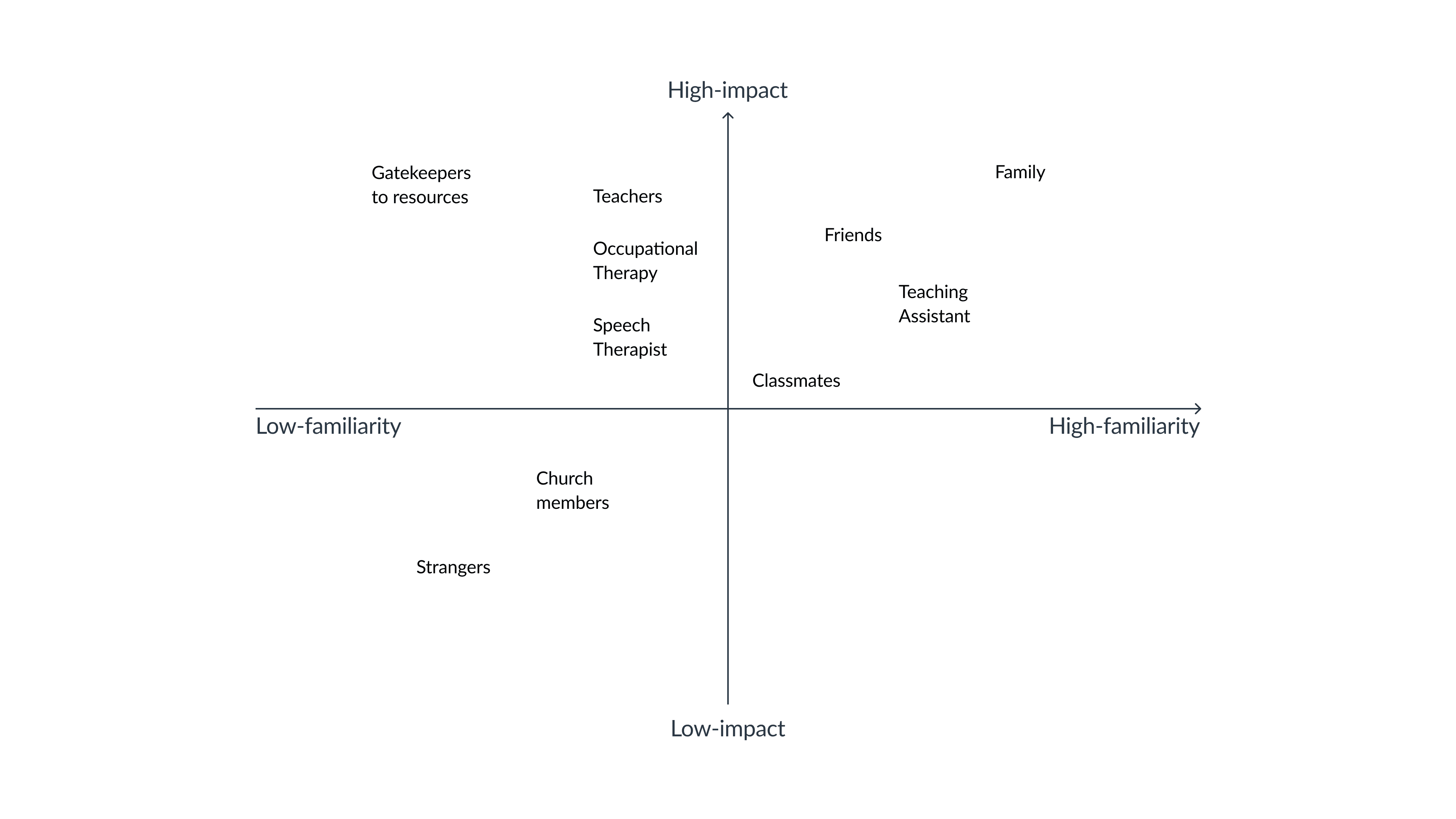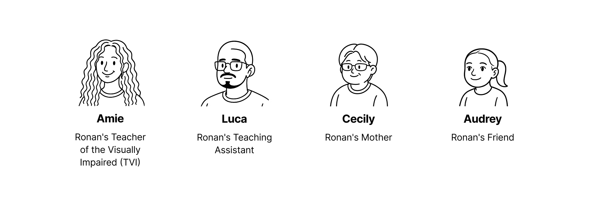 Interviewed four key people in Ronan's life. Mapped Ronan's support system and analyzed existing communication methods, alongside four categories of assistive technology tools.