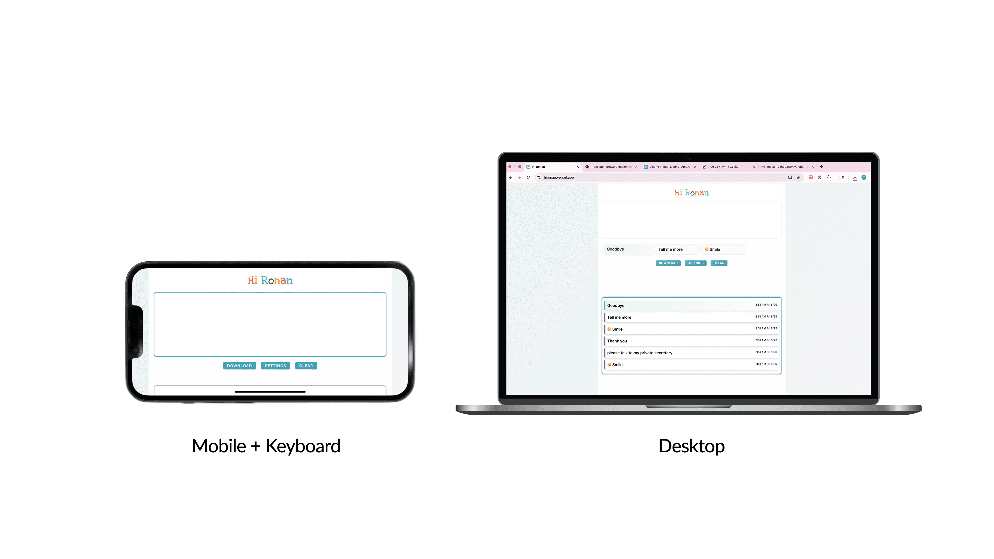 Hi Ronan is built around one belief: communication should require as little friction as possible. Today, that means a keyboard, a phone. But brain-computer interface research points to a future where users like Ronan could generate speech directly from neural signals — no hands, no screen, nothing to carry. The goal was never the device. It was always Ronan's voice.